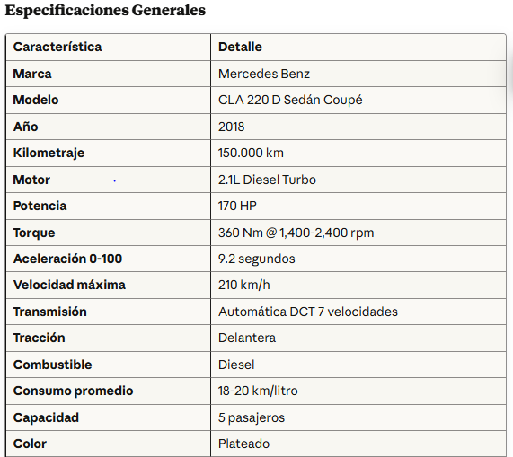 Con 150.000 kilómetros y mantenimiento certificado Mercedes, este CLA representa una oportunidad única de experimentar el lujo alemán con la tranquilidad de un motor diesel probado y eficiente.